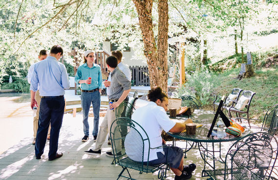 Multiple outdoor areas for reception and/or pre-ceremony relaxing.