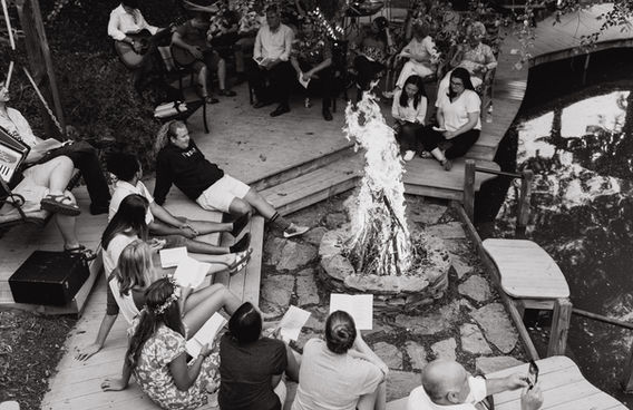 The fire pit at the pond is the perfect place to hang out with family and friends.